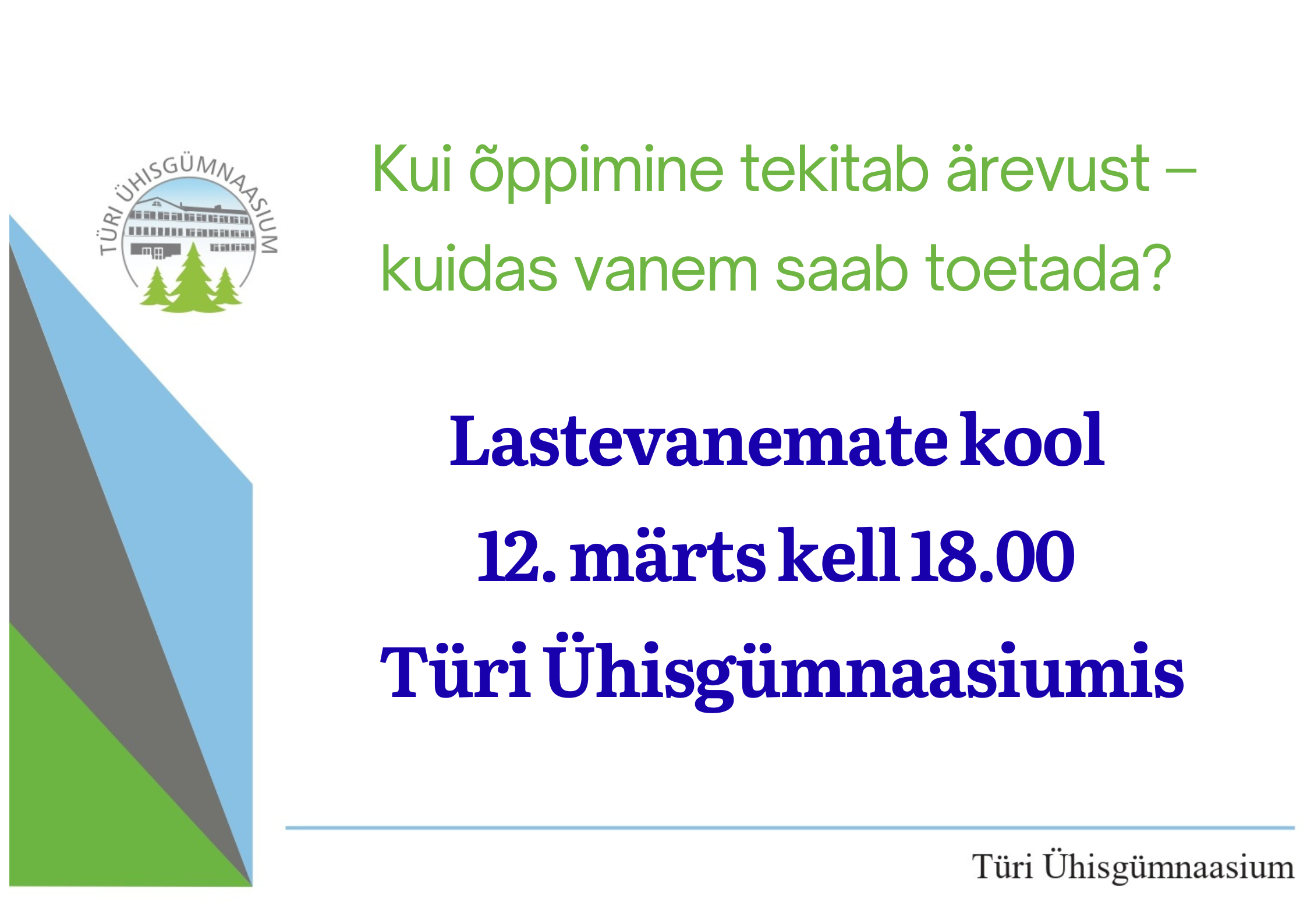 Toimumisaeg on neljapäev, 12. märts kell 18.00 Türi Ühisgümnaasiumis
