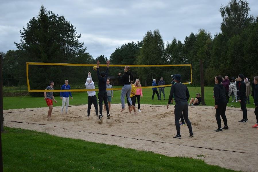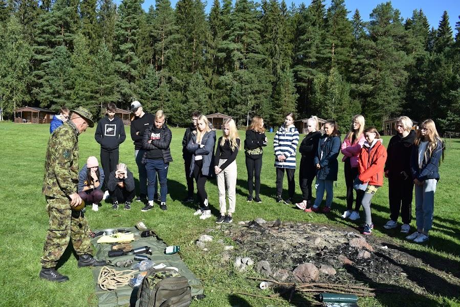 „Mina magan seal, panin sulle ka koha kinni, ei, see kämpa on täis!” ning palju sääraseid hõikeid võis kuulda üle laagriplatsi, sest koolilaagri olulisemaks punktiks on alati parima voodikoha leidmine, kuid olgem ausad, kes tuleb koolilaagrisse magama? Õpilaste plaanid paisati tulle, kui arendusjuht Ketlin teatas kõva häälega, et kümnendikud lähevad kaitseväe telkidesse, kaheteistkümnendikud kämpingutesse ja ülejäänud majja. Teatele järgnes sprint ning suur telkide ülespanemise maraton, mida pidid juhendama riigikaitse laagri läbinud abituriendid, kes olid pigem ujedad ja eelistasid mõnusalt jälgida, kui et abikätt külge panna. Üles need telgid igatahes said ning igaüks mõne ööaseme endale ka leidis, sest kui pihta hakkasid koolitused, siis üldist nurinat ja jonni oli kuulda pigem vähe.